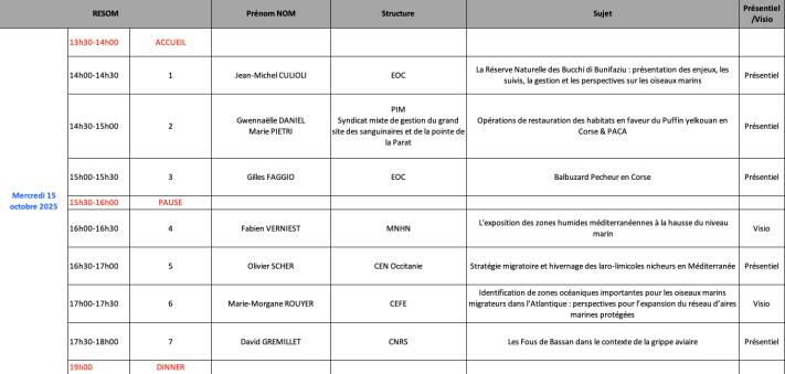 - le 17/10 : sortie terrain de 9h00 à 15h00 (archipel des Ile des Lavezzi)