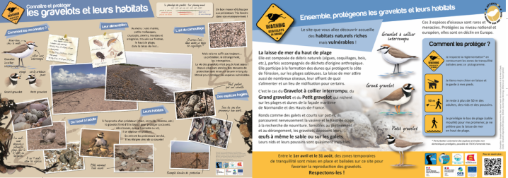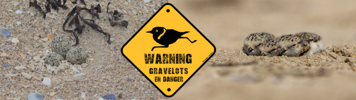 Du 1er Avril à fin Août, pendant la période de reproduction des gravelots, ne cherchez pas à récupérer les déchets situés en haut de plage, au sein des secteurs de nidification balisés (ou non) par les pictogrammes jaunes « Warning Gravelots en danger » : des professionnels formés à la protection des espèces les récupéreront lorsque les jeunes gravelots seront volants et capables de se débrouiller tout seul.